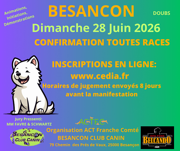 séance de confirmation toutes races, sur le terrain du Besançon Club Canin
